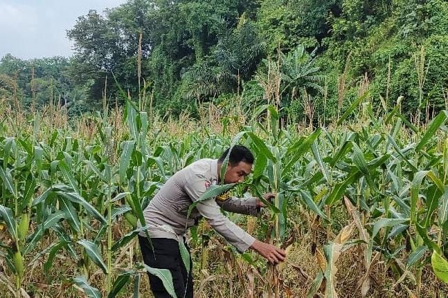 Lakukan Pengecekan Lahan Jagung Bhabinkamtibmas Polsek Anyar Sambang Petani