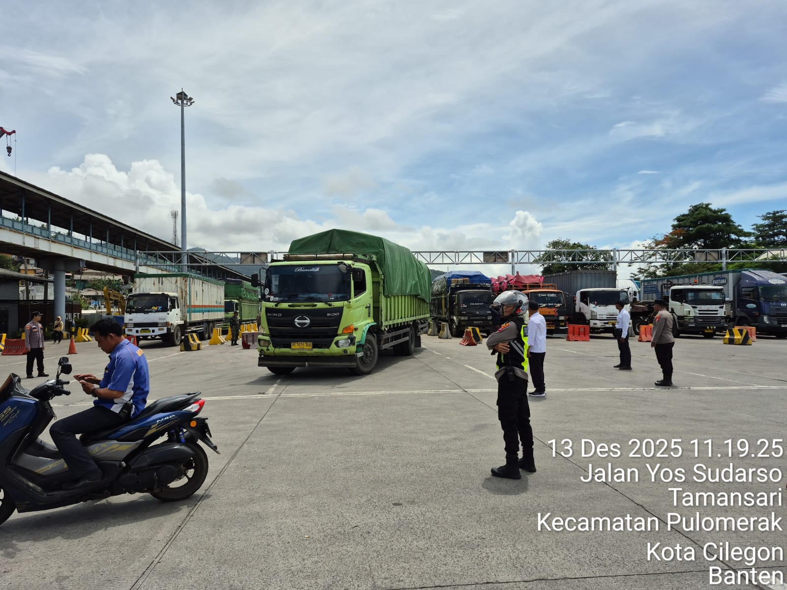 Cilegon - Dalam rangka peningkatan pelayanan prima kepada masyarakat, Kskp Merak Polres Cilegon Polda Banten melaksanakan pengaturan antrian R4 yang akan masuk ke Kapal Ferry di Pelabuhan Merak, Sabtu (13/12/2025).