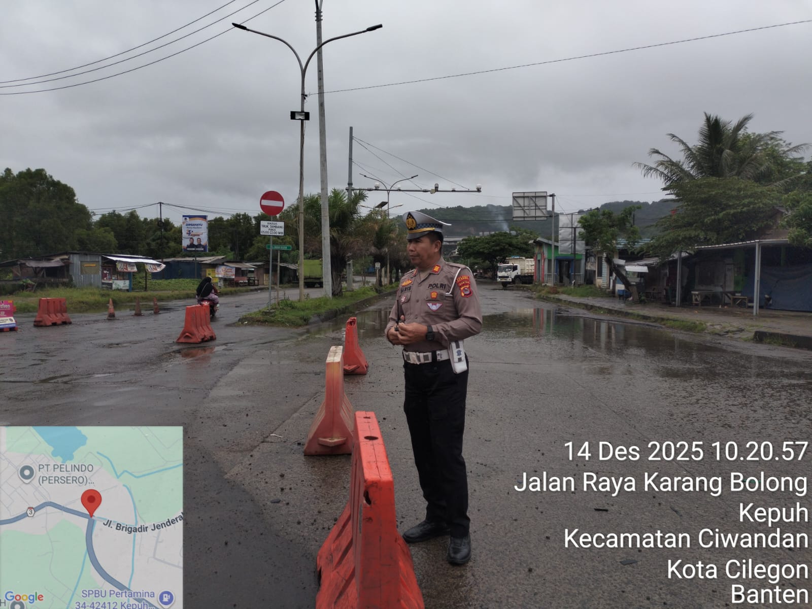 Cilegon - Personil Unit Lantas Polsek Ciwandan Polres Cilegon Polda Banten melaksanakan kegiatan monitoring jalur wisata di depan Pos Lantas JLS Ciwandan, Minggu (14/12/2025).