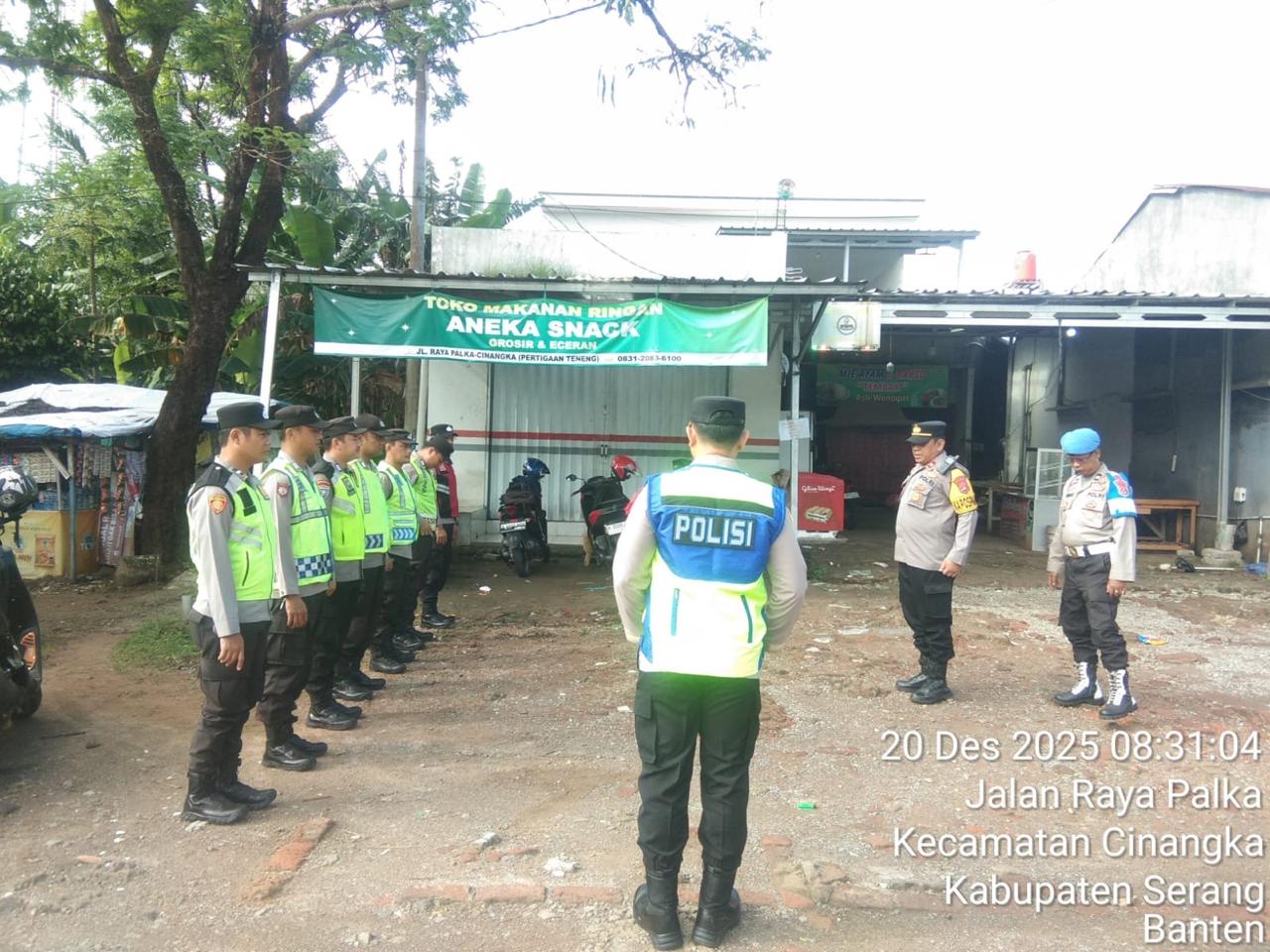 *POLRES CILEGON* Polda Banten. Menjaga kegiatan dan pastikan Aman Polsek Cinangka Polres Cilegon terjunkan Petugas jaga pengamanan PAM kegiatan Natal dan tahun baru di Pospam Cinangka Kecamatan Cinangka. Sabtu (20/12/2025).