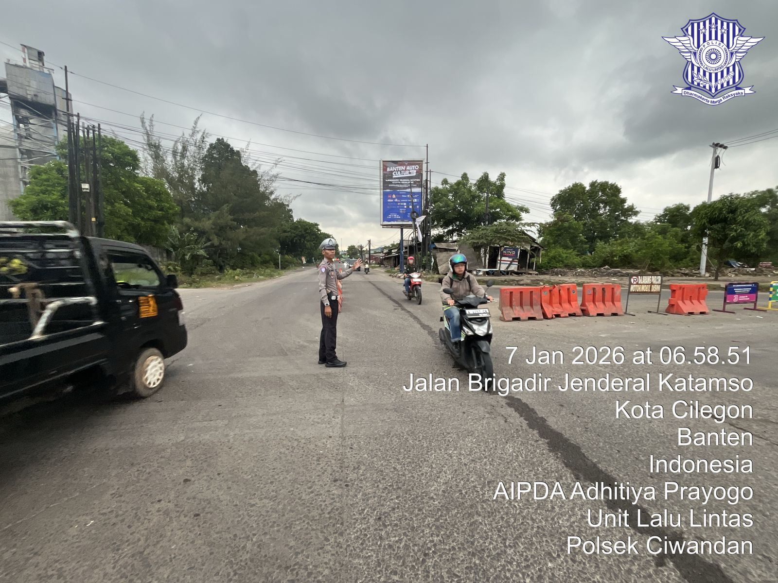 Cilegon – Berikan Pelayanan Kepada Masyarakat Personil Polsek Ciwandan Polres Cilegon Polda Banten melaksanakan pengaturan di titik kepadatan Arus Lalu-lintas Yang Ada Di daerah Hukum Polsek Ciwandan, Rabu (07/01/2026).