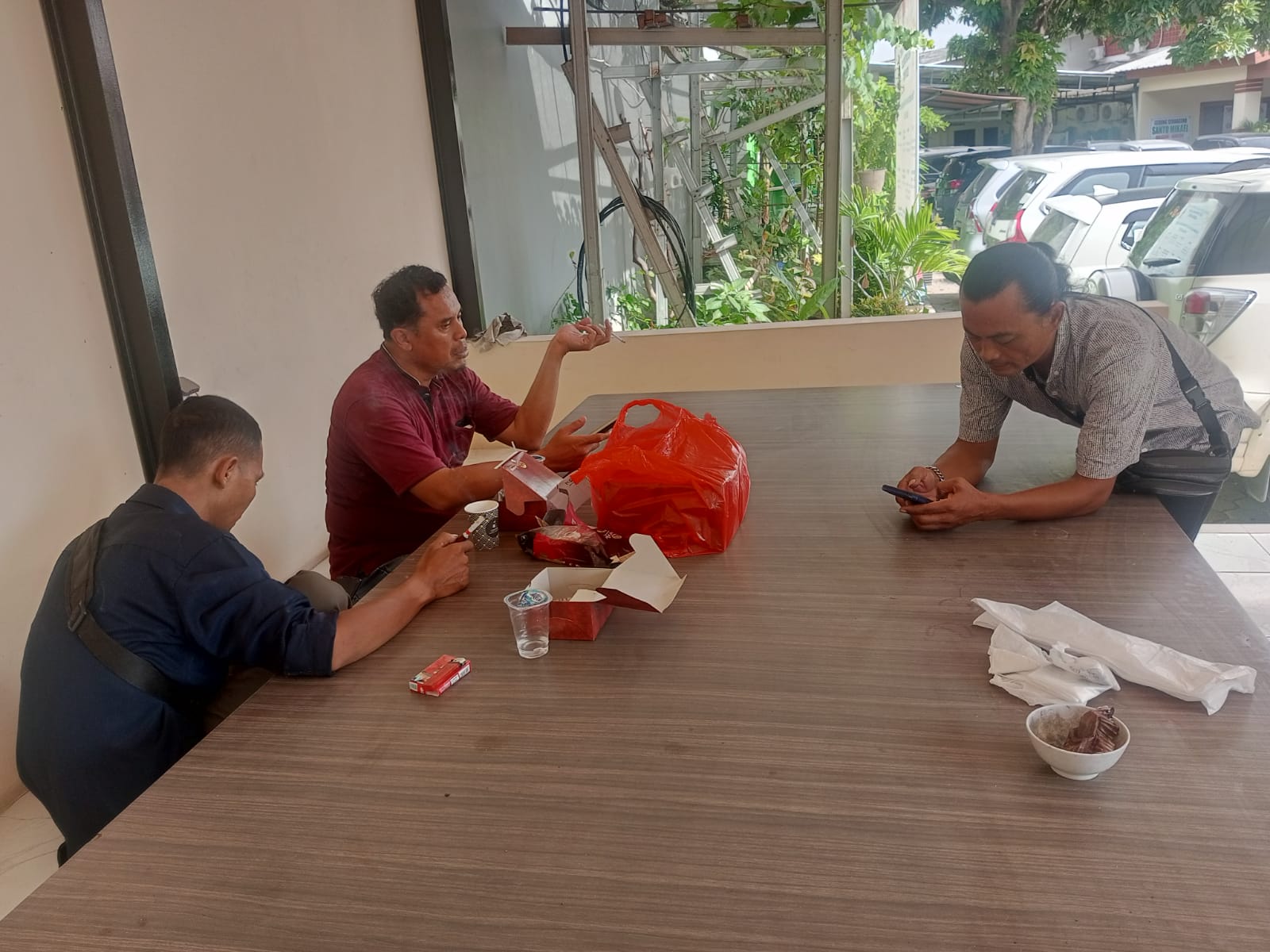 Personil sat intelkam melakukan koordinasi dengan tokoh pemuda kec. Jombang kota cilegon.