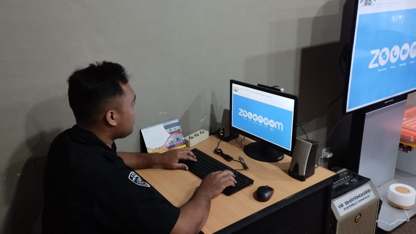 Anggota Tik Polres Cilegon Menyiapkan Sarana dan Prasarana Untuk Kegiatan Zoom meeting Dalam pelaksanaan kegiatan zoom meeting tersebut anggota TIK Polres Cilegon yang bertanggung jawab untuk menyiapkan peralatan zoom. Selain itu agar di tidak ada gangguan jaringan sebelum pelaksanaan anggota TIK melakukan pemeriksaan terhadap sarana dan prasarana tersebut . Satu jam sebelum kegiatan zoom meeting itu dimulai. Kapolres Cilegon AKBP. DR. MARTUA RAJA TARIPAR LAUT SILITONGA. melalui Kasi TIK AIPTU Suwanto, S.H. menyampaikan bahwa “untuk menunjang kelancaran penyampaian informasi anggota TIk Polres Cilegon selalu memeriksa sarana dan prasarana tersebut, sebelum maupun pada saat pelaksanaan akan selalu di monitor”