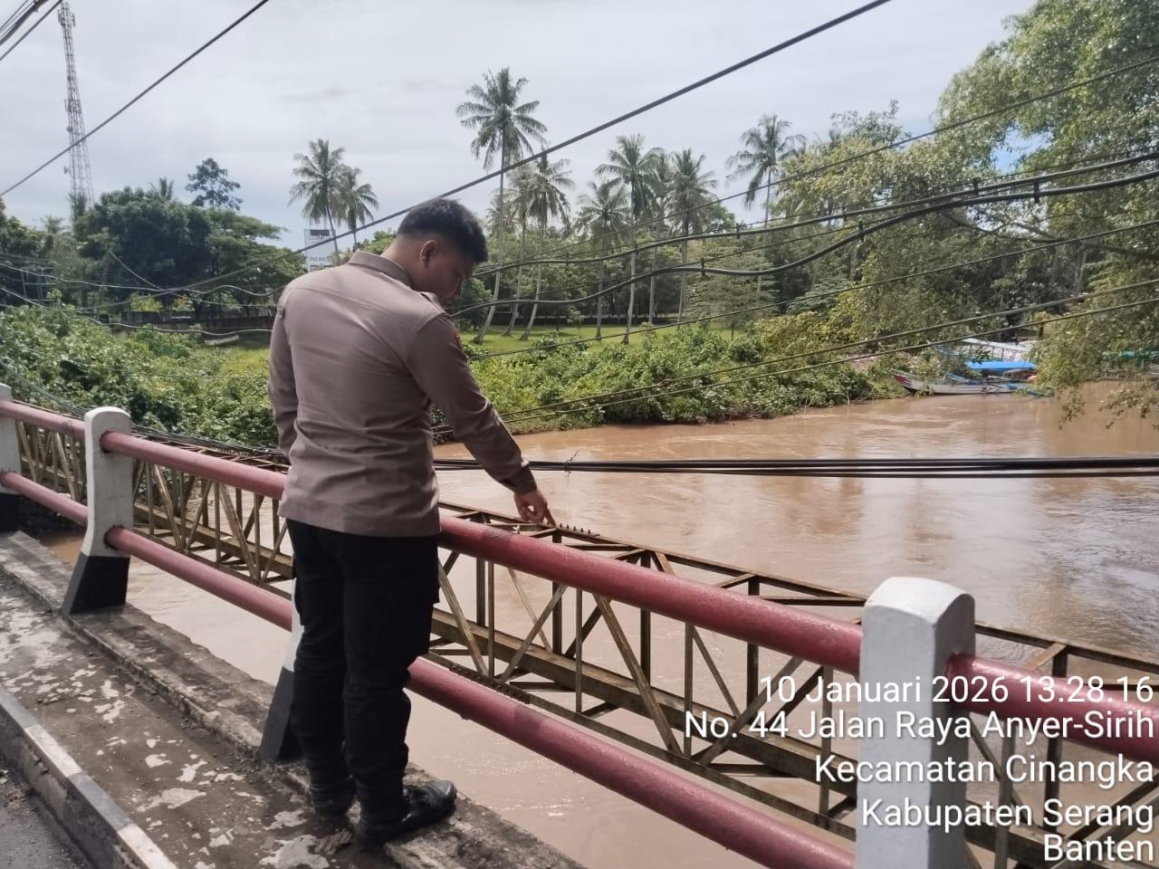 Piket Polsek Cinangka secara rutin melakukan pengecekan kondisi sungai dan berkoordinasi dengan pihak terkait untuk memantau perkembangan debit air. Pemantauan ini juga melibatkan partisipasi aktif dari masyarakat setempat.