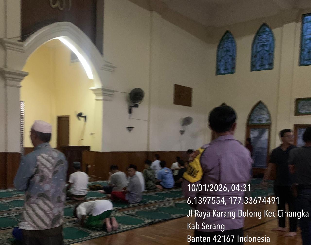 Dalam kunjungannya Bhabinkamtibmas Polsek Cinangka Polres Cilegon Polda Banten melaksanakan Subuh keliling di Masjid sekitar Cinangka Desa. Bulakan serta untuk silahturahmi dakam menciptakan kondisi yang aman bersama, masyarakat.Tutup Kapolsek Cinangka.