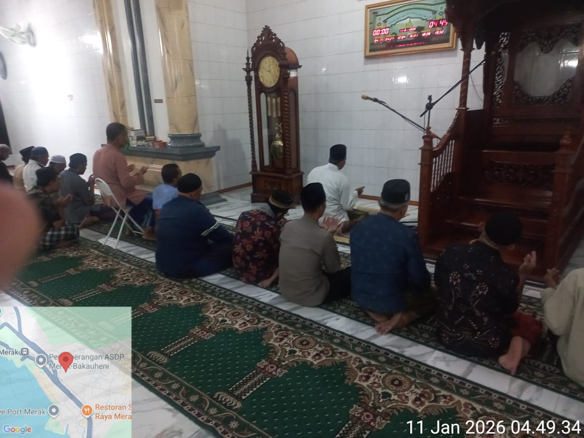 Cilegon – Personil Kskp Merak Polres Cilegon Polda Banten menggelar kegiatan Pembinaan Rohani dengan shalat subuh keliling di Masjid Yang ada Di Daerah hukum Polsek Kp Merak Polres Cilegon Polda Banten, Minggu (11/01/2026).