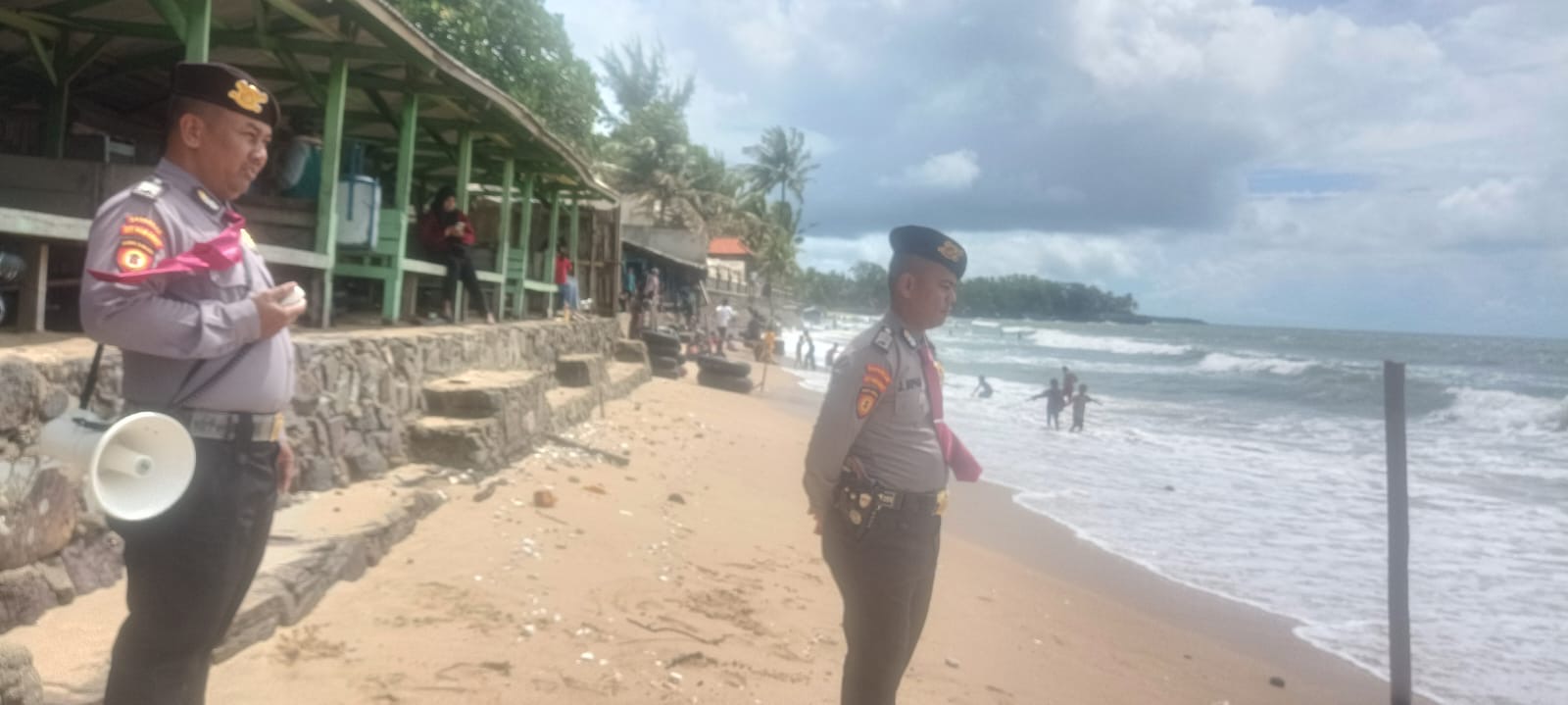 Personel Satpamobvit Polres Cilegon melaksanakan patroli wisata serta memberikan himbauan kepada para pengunjung, guna mewujudkan harkamtibmas di daerah hukum Polres Cilegon. Dengan pengawasan yang dilakukan oleh personel Satpamobvit Polres Cilegon, situasi di sekitar pantai ini tetap aman dari berbagai potensi ancaman.