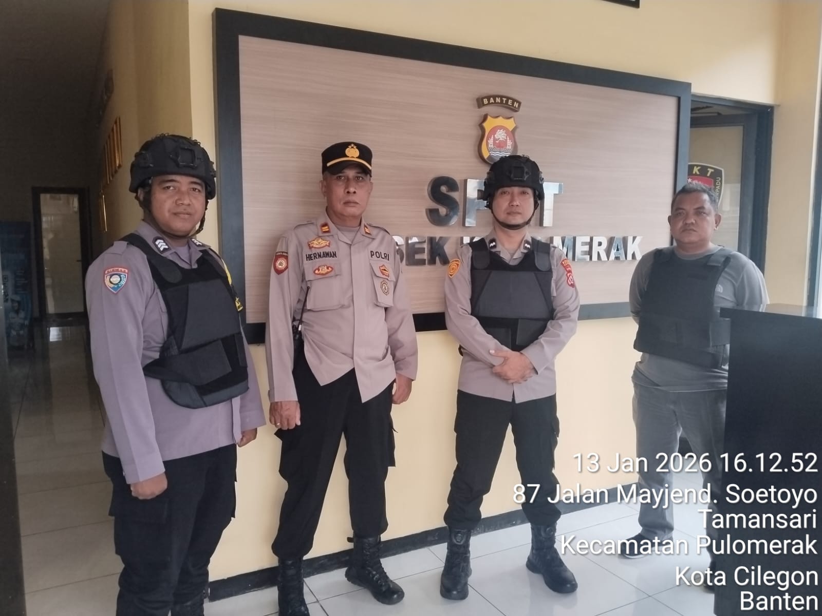 Cilegon - Personel piket jaga Polsek Kskp Merak Polres Cilgon Polda Banten melaksanakan siaga 1 Polsek pelaksanaan Sispam Mako oleh piket siaga dipimpin oleh Kspk Polsek Kskpy Merak Polres Cilegon Polda Banten, Selasa (13/01/2026).