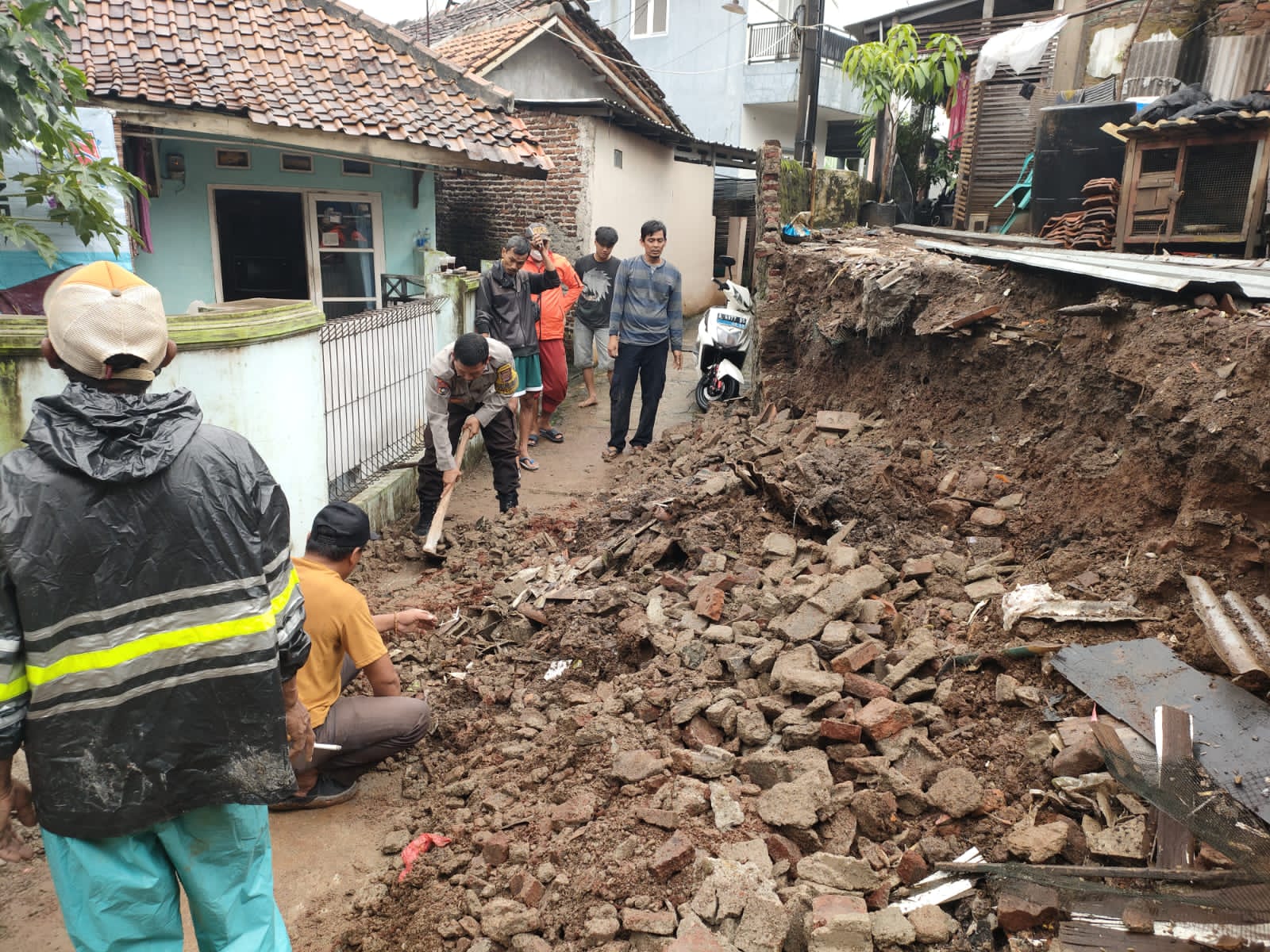 Setelah menerima laporan dari warga pada pagi hari, Bripka Agustoni langsung mendatangi lokasi kejadian. Bersama Lurah Kotabumi Ibu Nurul Jannah dan Babinsa Serma. Gatot S, tim melakukan pengecekan kondisi lokasi, membantu mengamankan area terdampak, serta memberikan bantuan pertama kepada keluarga yang terkena dampak longsor. Beberapa bagian tanah pekarangan rumah warga mengalami pergeseran akibat kondisi cuaca yang lembab beberapa hari terakhir.