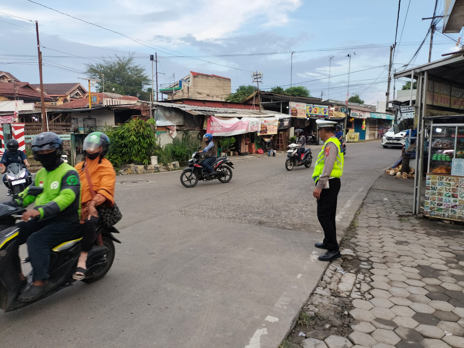 Pengaturan arus Lalu lintas Polsek Cilegon Polres Cilegon Polda Banten lancarkan arus kendaraan