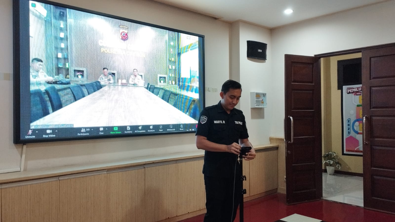 Anggota TIK Polres Cilegon Siapkan Sarana Zoom Meeting