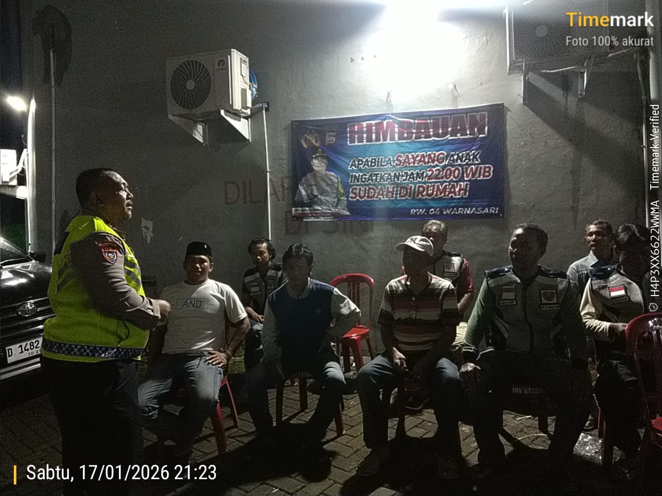 Cilegon - Kasat Binmas Polsek Ciwandan Polres Cilegon Polda Banten IPTU Muhyidin bersama Personil Bhabinkamtibmas Polsek Ciwandan Polres Cilegon Polda Banten BRIPKA Heri Siswantoko melakukan kontrol Pos Ronda dan Berikan himbauan kepada pihak terkait dan warga, agar kegiatan Siskamling ditingkatkan lagi, Minggu (18/01/2026).