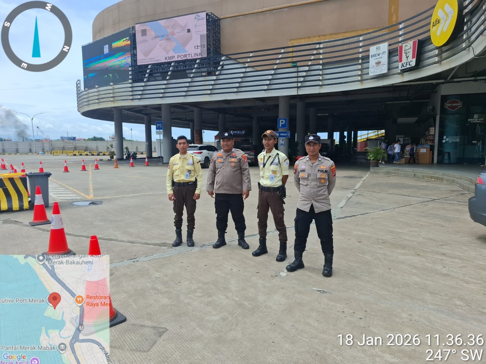 Cilegon - Personel Polsek Kskp Merak Polres Cilegon Polda Banten melaksanakan sambang dan patroli kawasan pelabuhan merak dalam rangka menjaga Harkamtibmas di Kawasan Pelabuhan Merak, Minggu (18/01/2026).