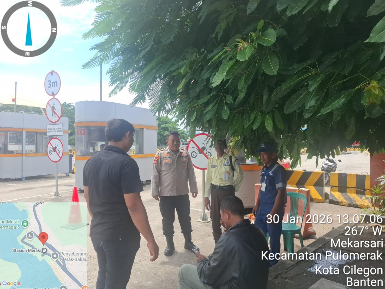Cilegon - Personel Polsek Kskp Merak Polres Cilegon Polda Banten melaksanakan sambang dan patroli kawasan pelabuhan merak dalam rangka menjaga Harkamtibmas di Kawasan Pelabuhan Merak, Jumat (30/01/2026).