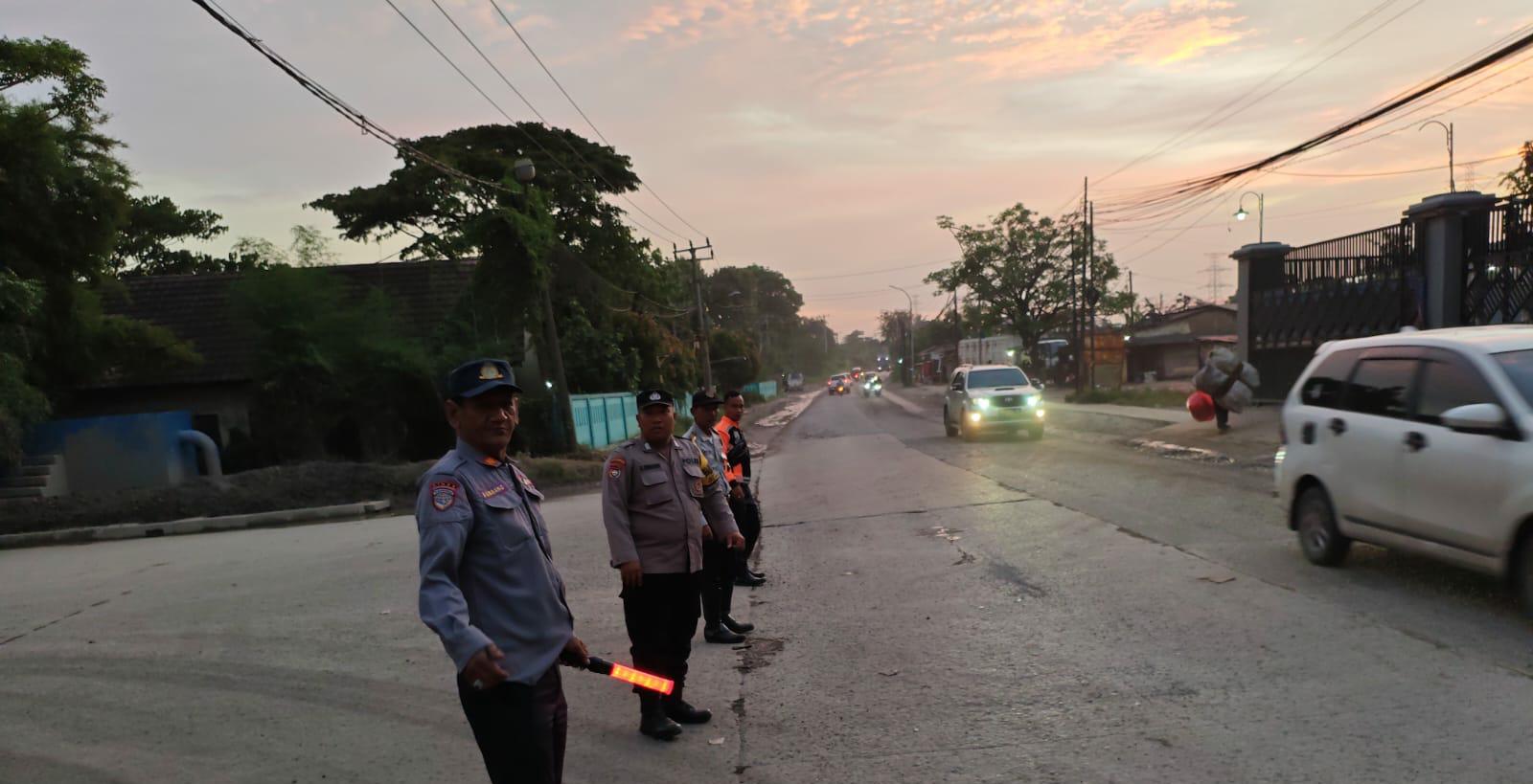 Strong Poin Pagi Hari, Ipda Gana Kanit Samapta dan Bripka Ghery Bhabinkamtibmas Pengaturan lalu lintas Di Jalan Raya Wadas Bojonegara