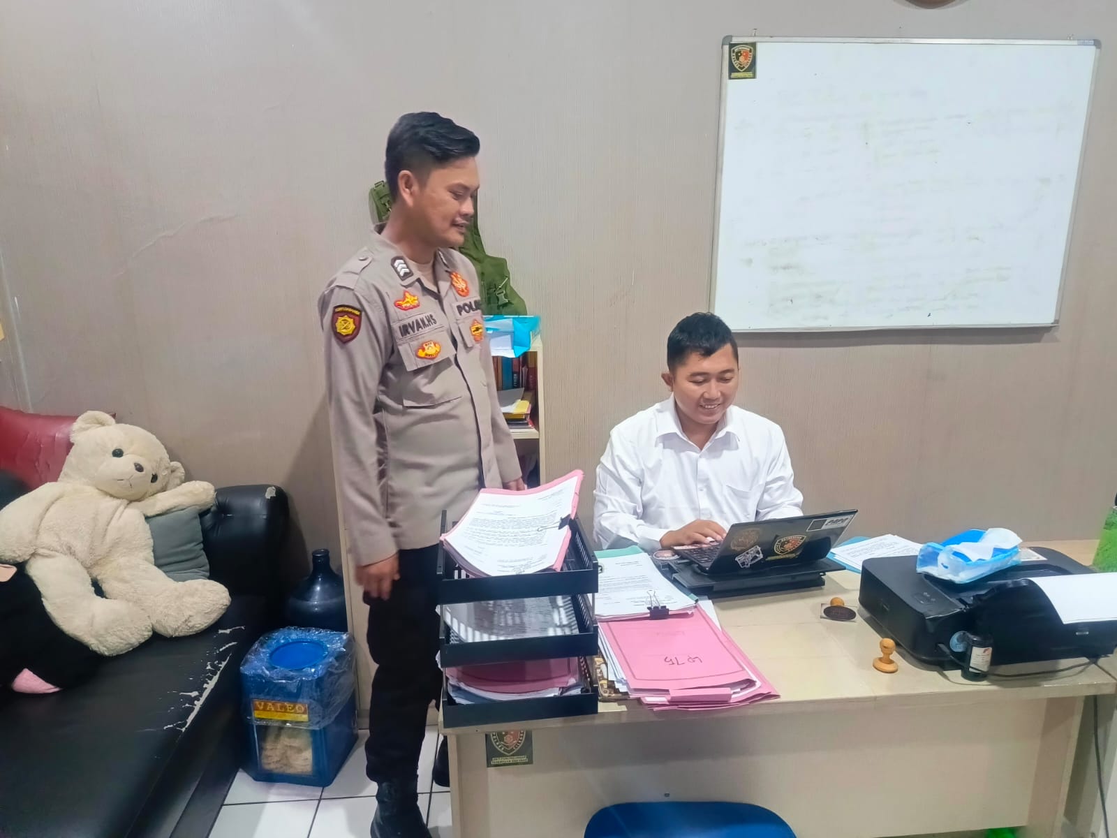 AnggotaSat Tahti Polres Cilegon Melakukan Kordinasi Terhadap Min Reskrim Terkait BB Yang Disita dan Kelengkapan Administrasi.