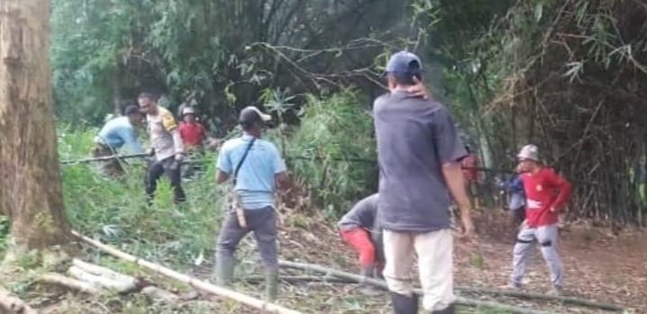 Personel Bhabinkamtibmas Kelurahan Pabean (Kaplimas) Aipda Anton Sudrajat melaksanakan kegiatan gotong royong bersama masyarakat untuk membersihkan sampah dan puing-puing di Tempat Pemakaman Umum (TPU) Lingkungan Karangtengah Kelurahan Pabean