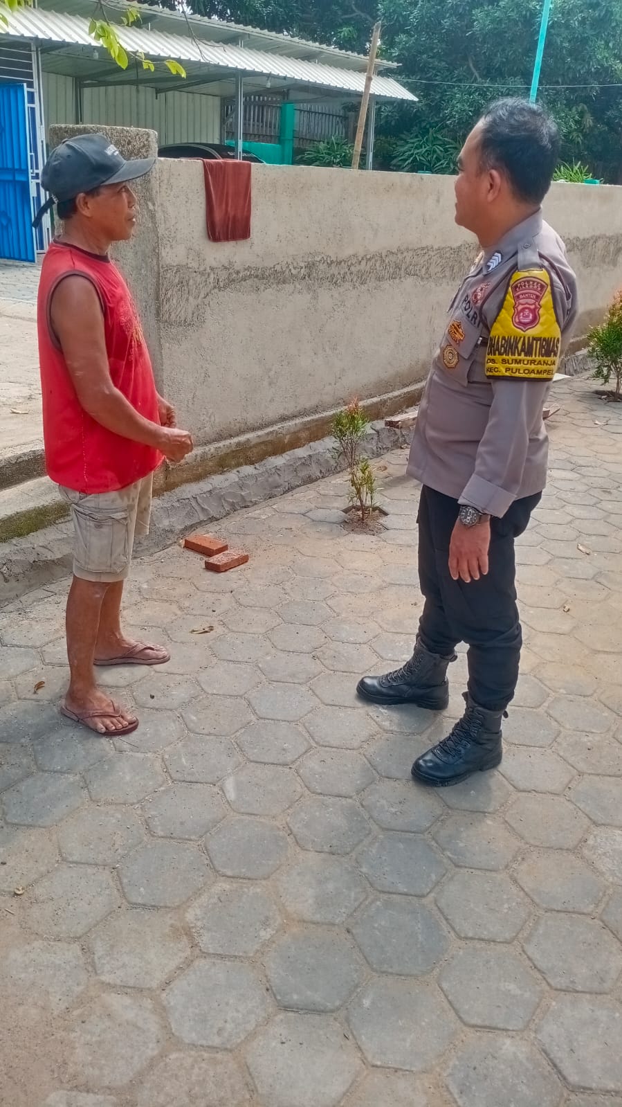 Dalam kesempatan tersebut Bhabinkamtibmas menyampaikan himbauan dan pesan pesan kamtibmas dan menyampaikan tentang pentingnya kerjasama dalam membina Kamtibmas baik dengan aparat pemerintahan setempat dan masyarakat agar situasi keamanan selalu kondusif, serta diharapkan agar menyampaikan permasalahan sekecil apapun sehingga dapat diselesaikan secepatnya dengan cara kekeluargaan.