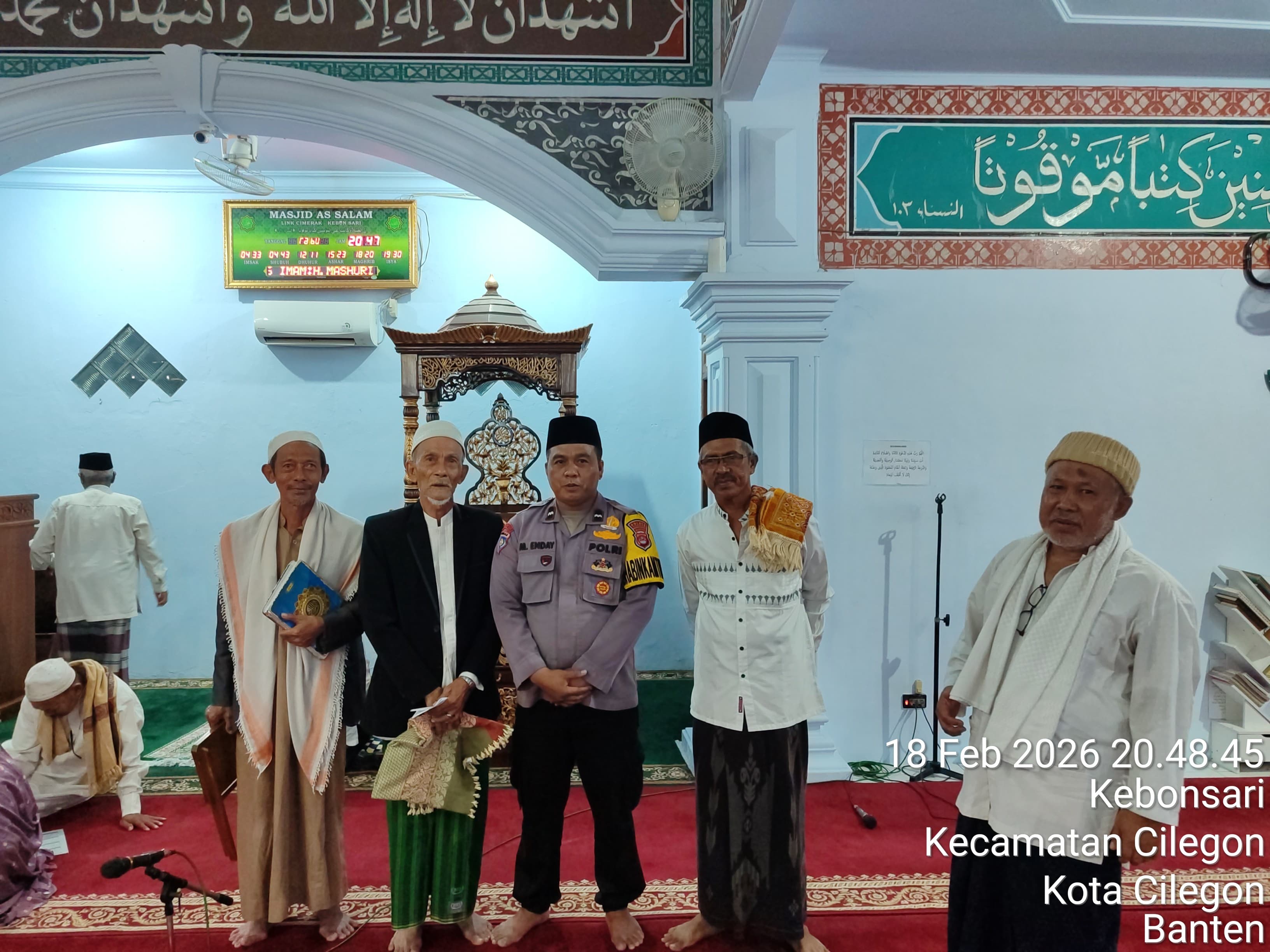 Cilegon - Bhabinkamtibmas polsek Ciwandan Polres Cilegon Polda Banten Silahturahmi Dan Tarawih Keliling Bersama warga Masyarakat lingkungan yang bertempat di masjid lingkungan binaannya, Kamis (19/02/2026).