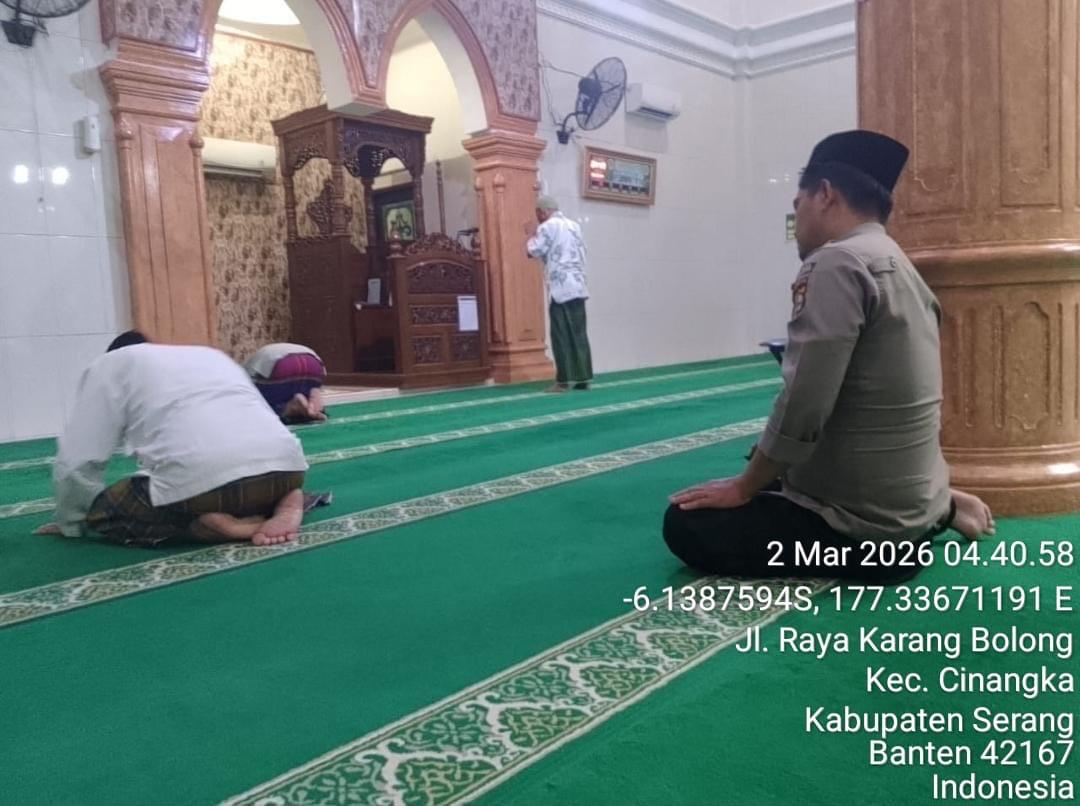 *POLRES CILEGON* Bhabinkamtibmas Polsek Cinangka Polres Cilegon Polda Banten laksanakan Subuh keliling di Desa Mekarsari Kec. Cinangka, Senin (02/03/2026)