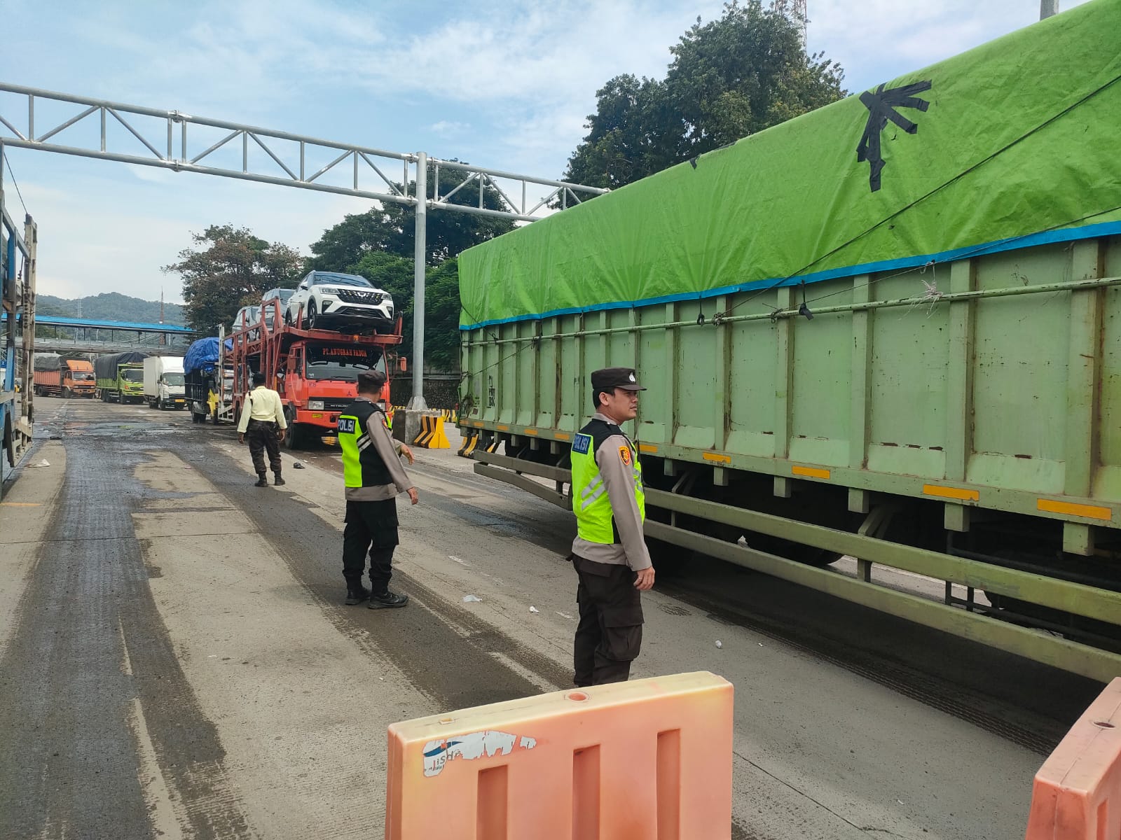 Polisi Atur Kendaraan R4 Menuju Kapal Ferry Di Pelabuhan Merak