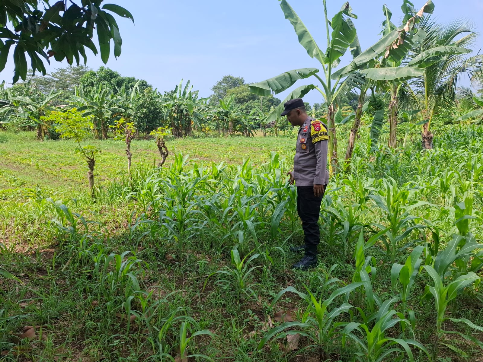 Pantau lahan jagung pok tani sinarjaya kecamatan.puloampel Desa sumranja olleh Bhabinkamtibmas Polsek Puloampel
