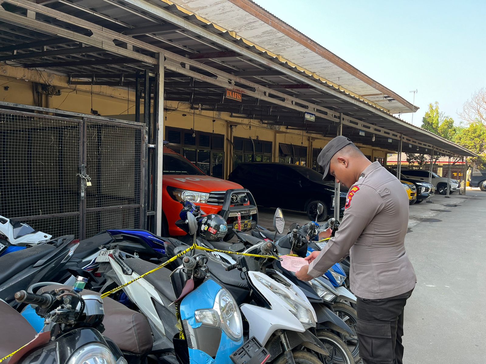 Cilegon, Polres Cilegon Polda Banten. Di gudang barang bukti Polres Cilegon. Kapolres Cilegon Polda Banten AKBP Dr. Martua Raja Taripar Laut Silitonga,S.H,.S.I.K.,M.Si Kepada Kasat Tahti Polres Cilegon Iptu Yudi Hartono mengingatkan agar anggota piket sattahti agar tetap terus kontrol barang bukti yang sudah dititipkan di sattahti polres cilegon.(10/03/2026)