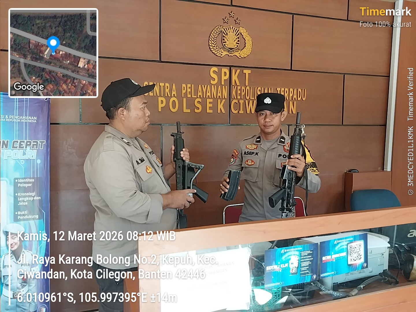 Cilegon - Sebelum melaksanakan tugas jaga Mako Personil Polsek Ciwandan Polres Cilegon Polda Banten Melaksanakan Serah Terima Tugas jaga dan Mengecek Kelengkapan barang-barang Inventaris, Kamis (12/03/2026).