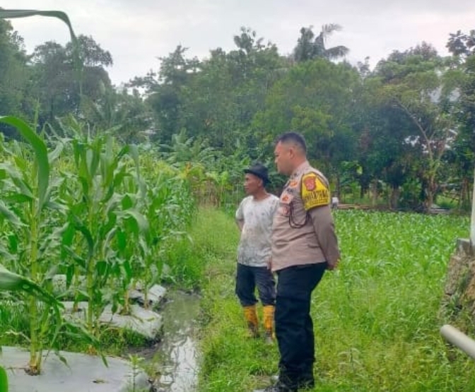 Cek Dan Monitoring Tanaman Jagung, Personil Polsek Purwakarta bersama warga