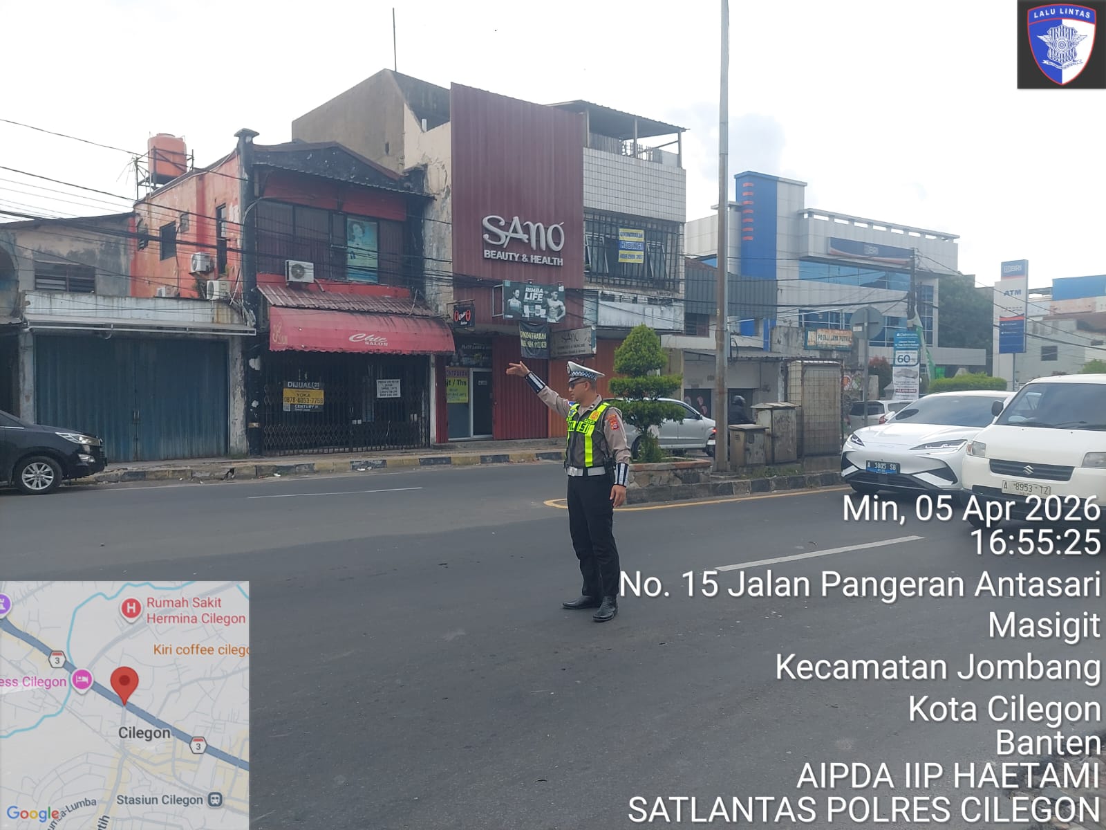 Cilegon – Polres Cilegon Polda Banten, Dalam Mewujudkan Aksi Nyata Pelayanan Kepada Masyarakat, Personil Satlantas Polres Cilegon Polda Banten Laksanakan PECAK (Pergelaran Cepat Anggota Kepolisian) Pengaturan Lalu lintas di wilayah perkotaaan terutama di titik rawan kemacetan dan kecelakaan lalu lintas, Minggu (05/04/2026).