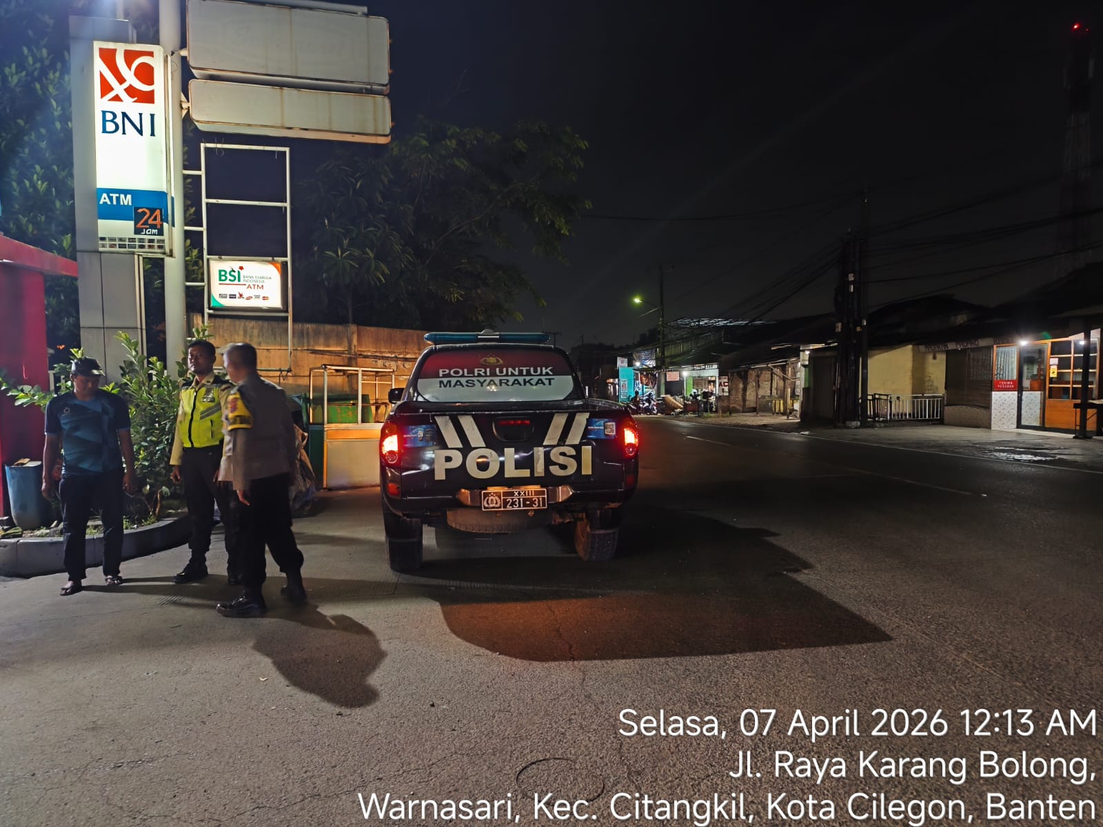 Cilegon - Polsek Ciwandan Polres Cilegon Polda Banten kembali menunjukkan komitmennya dalam menciptakan keamanan dan ketertiban masyarakat (kamtibmas) yang kondusif melalui Kegiatan Patroli Malam, Kegiatan ini dilakukan secara rutin dengan berkeliling di daerah hukum Polsek Ciwandan, Selasa (07/04/2026).