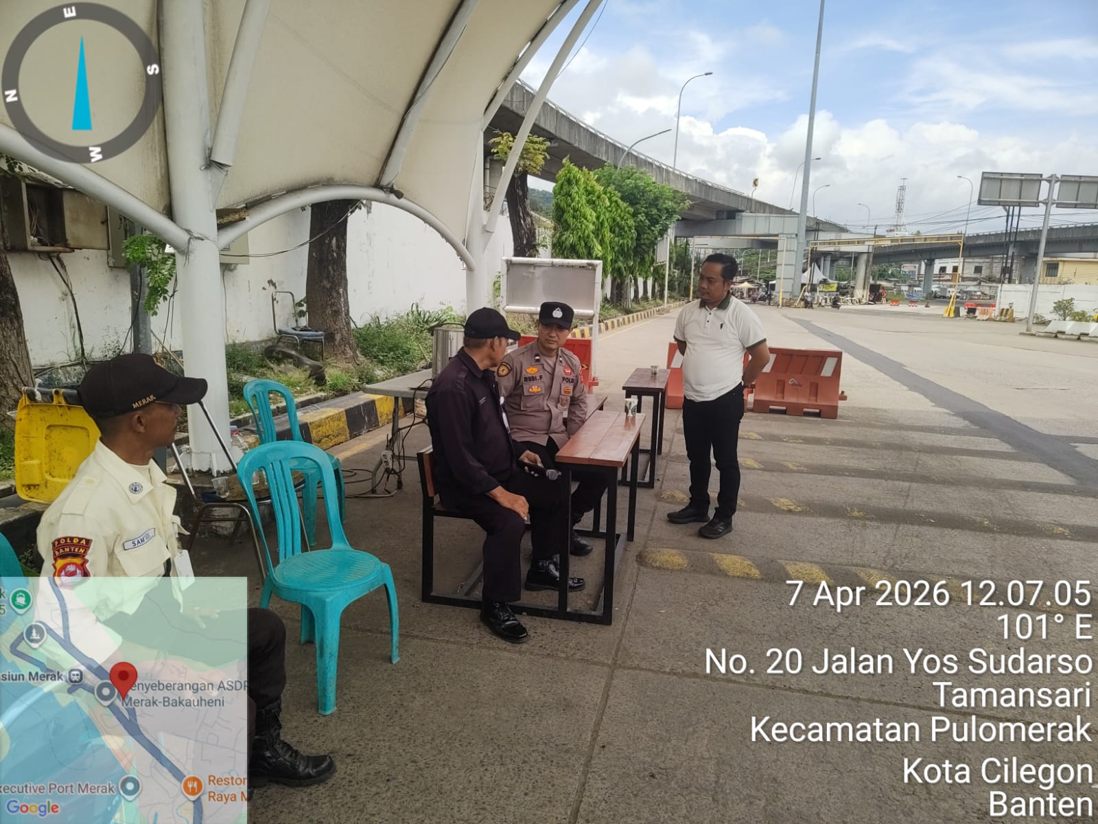 Cilegon - Personel Polsek Kskp Merak Polres Cilegon Polda Banten melaksanakan sambang dan patroli kawasan pelabuhan merak dalam rangka menjaga Harkamtibmas di Kawasan Pelabuhan Merak, Selasa (07/04/2026).