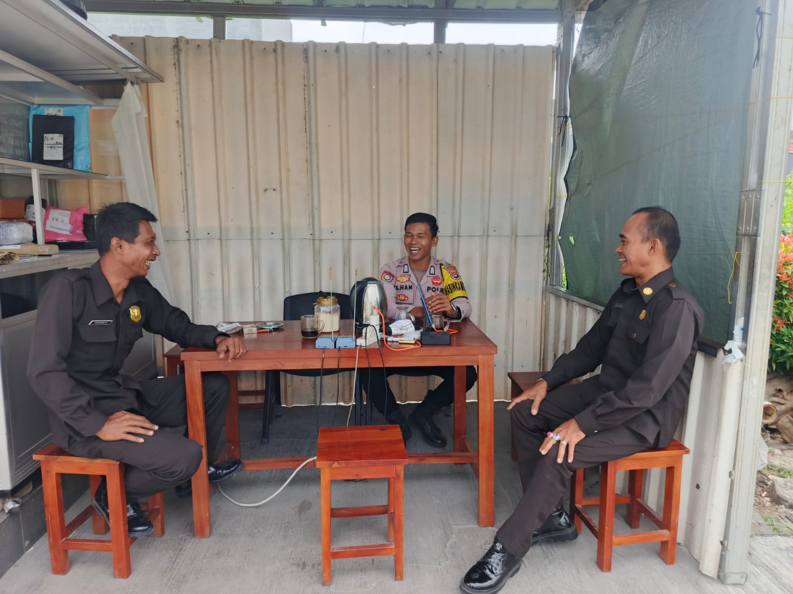 Cilegon – Polres Cilegon Polda Banten, Personil Polsek Cilegon Polres Cilegon Polda Banten laksanakan bincang dialogis sekaligus sampaikan himbauan kamtibmas kepada pihak keamanan/security  Komp Taman Cilegon Indah Kel. Sukmajaya Kec.Jombang Kota Cilegon. Kamis (09/04/2026).