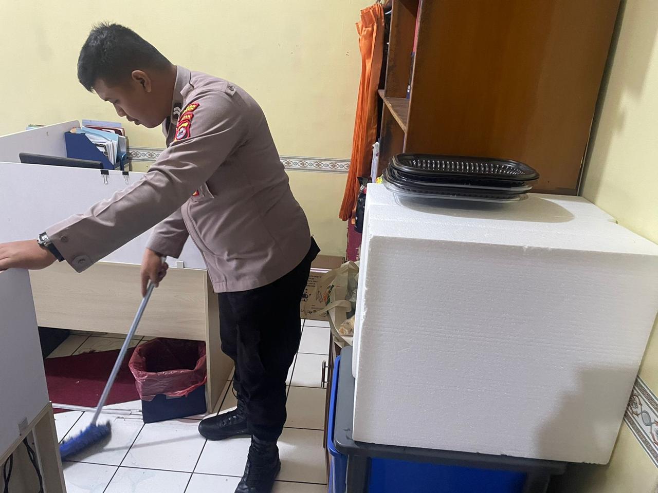 anggota SDM Polres Cilegon, Pelaksanaan menjaga kebersian aaktif ruangan kerja setiap saat.