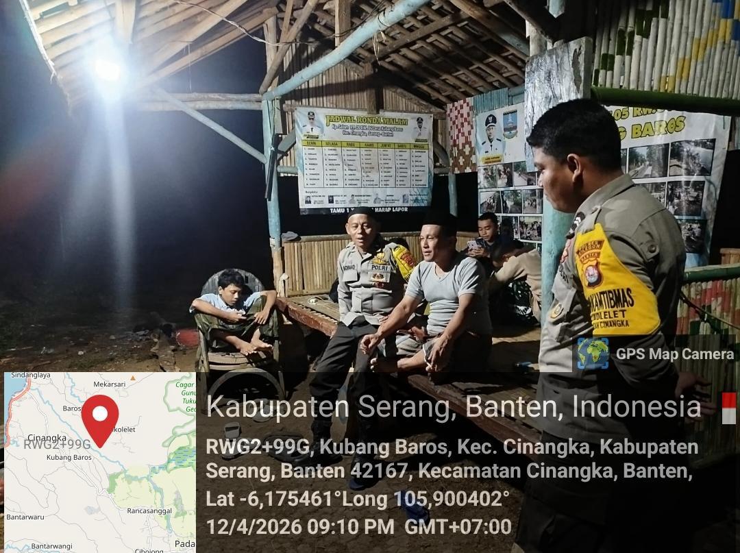 Kapolres Cilegon Polda Banten AKBP Martua Raja Taripar Laut Silitonga melalui Kapolsek Cinangka Polda Banten IPTU Rusnata menjelaskan dalam menjaga kemanan dan akuntansi lingkungan kami terus tingkatkan kegiatan Patroli menciptakan Rasa aman dengan hadir di tengah tengah masyarakat sehingga dapat meminalisir gangguan Kamtibmas serta menyampaikan Pesan-pesan Kamtibmas Kepada petugas yg melaksanakan kegiatan siskamling di lingkungannya masing-masing.