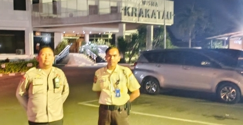 Bhabinkamtibmas Bripka Yudi Zulfikar Sapa Satpam Wisma Krakatau, Sampaikan Himbauan