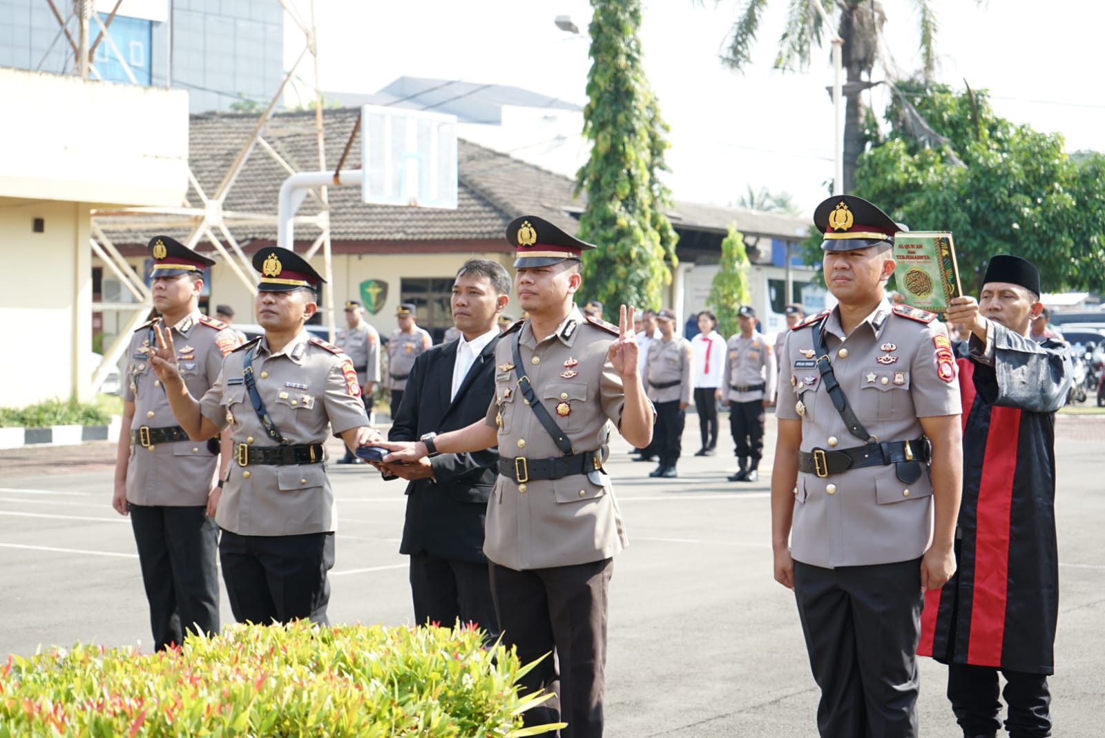 Cilegon - Kapolres Cilegon AKBP Dr. Martua Raja Taripar Laut Silitonga S.H S.IK M.S.I, memimpin langsung upacara pengangkatan dan serah terima jabatan (sertijab) tiga kapolsek di jajaran Polres Cilegon Polda Banten, kapolsek Kp Banten,Kapolsek Bojonegara  dan Kapolsek Puloampel, selasa ,14/4/26