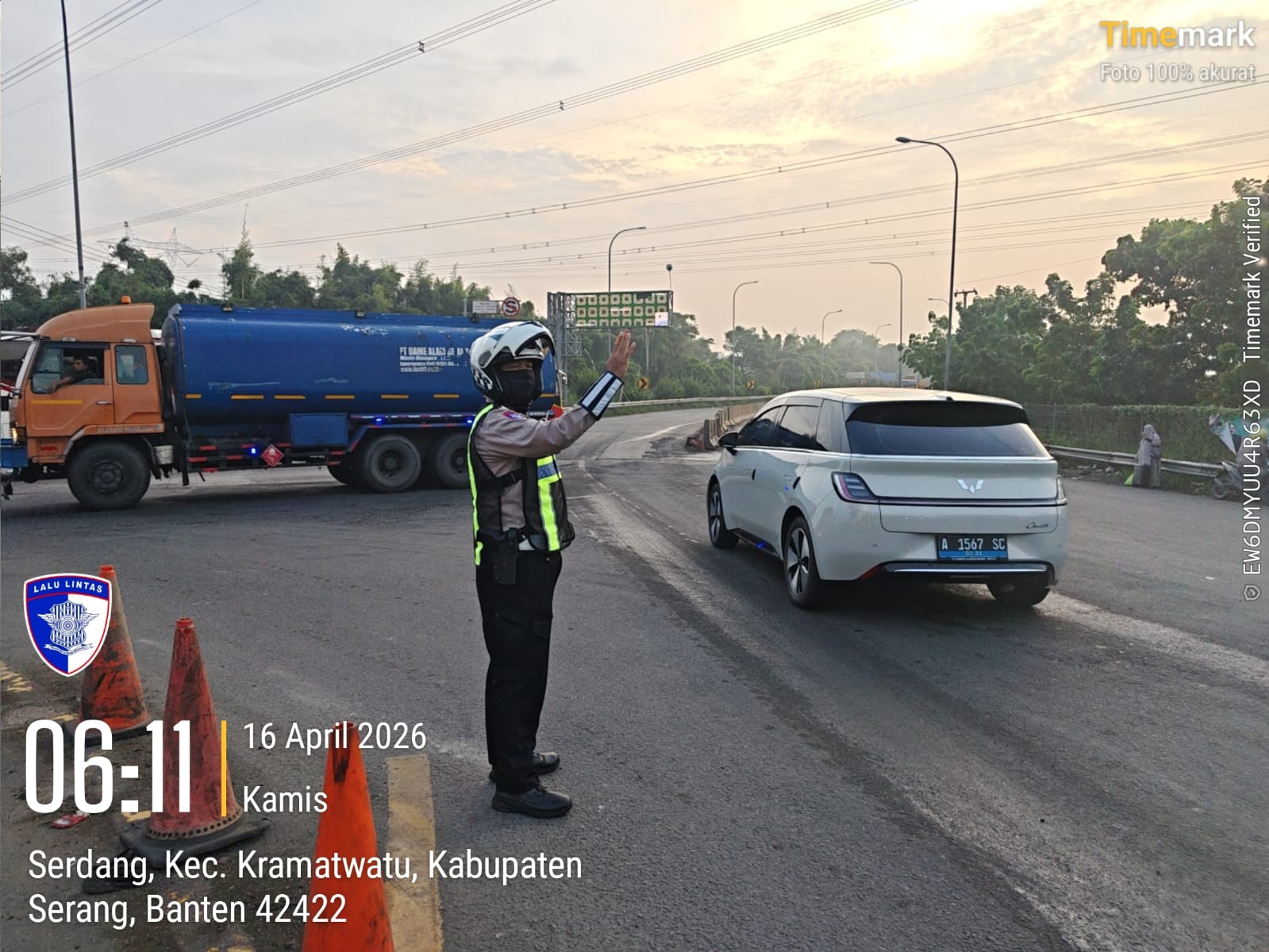 Cilegon, Satlantas Polres Cilegon Polda Banten – Berikan pelayanan kepada masyarakat Kasat lantas Polres Cilegon AKP Ridwan memerintahkan jajaran lalulintas untuk melaksanakan pengaturan lalu lintas di penggal – penggal jalan yang rawan kemacetan di Kota Cilegon, (Kamis,16/4/2026)