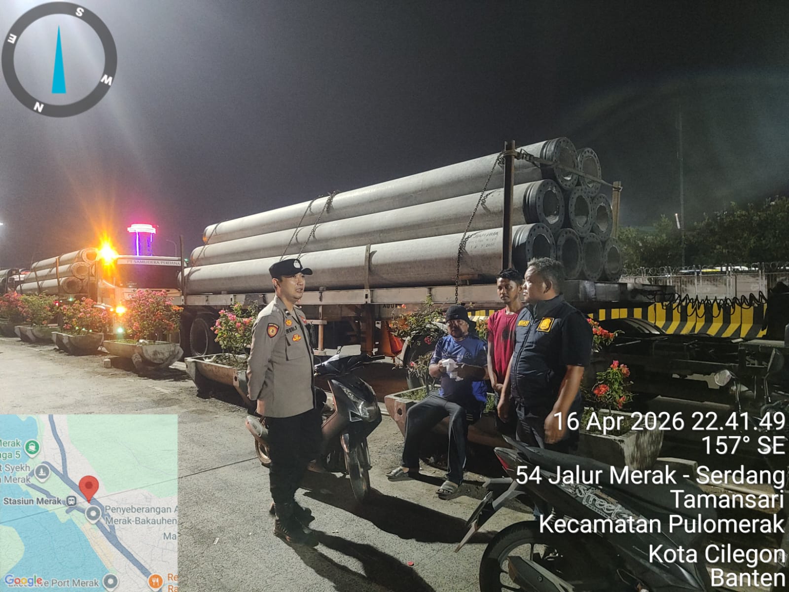 Cilegon - Personil Polsek Kskp Merak Polres Cilegon melaksanakan patroli di kawasan pelabuhan merak memberikan rasa aman dan damai, Jumat (17/04/2026)