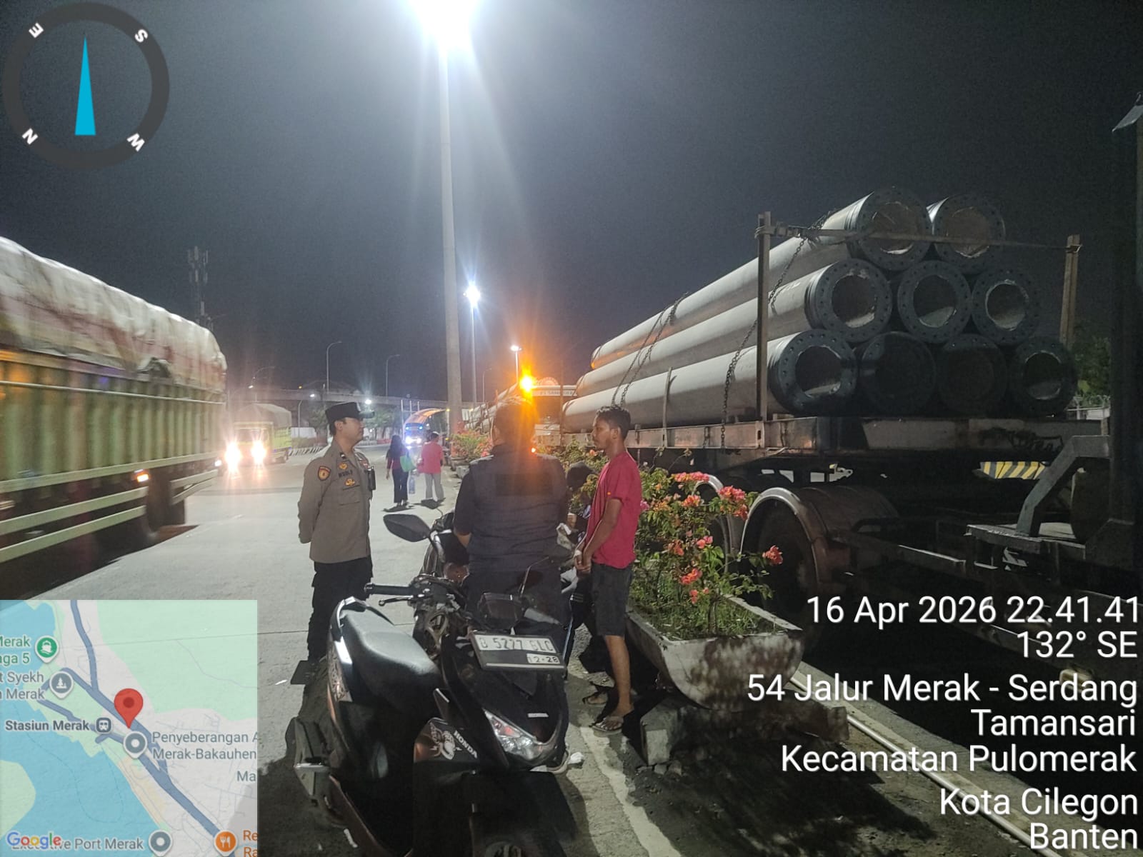 Cilegon - Personil Polsek Kskp Merak Polres Cilegon melaksanakan patroli di kawasan pelabuhan merak memberikan rasa aman dan damai, Jumat (17/04/2026)